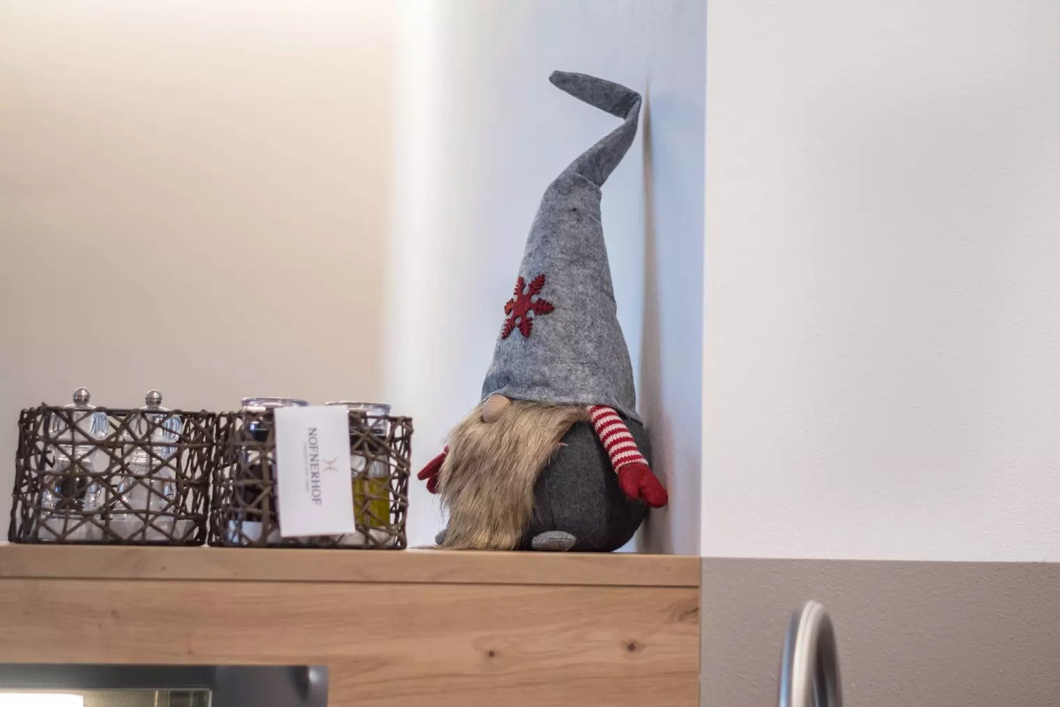 Diese geräumige Ferienwohnung zählt zwei Schlafzimmer mit Doppelbett und angrenzendem privaten Badezimmer samt Dusche, WC, Bidet und Waschbecken. Der Wohnraum verfügt über eine voll ausgestattete Küche, eine Ess-Ecke und ein ausziehbares Sofa. Von hier aus gelangt man auf eine Terrasse mit Sitzgelegenheiten und Blick auf die Sarner Scharte, das Rittner Horn, die Seiser Alm und den Schlern, den Latemar, das Weiß- und Schwarzhorn sowie die Belluneser Dolomiten.